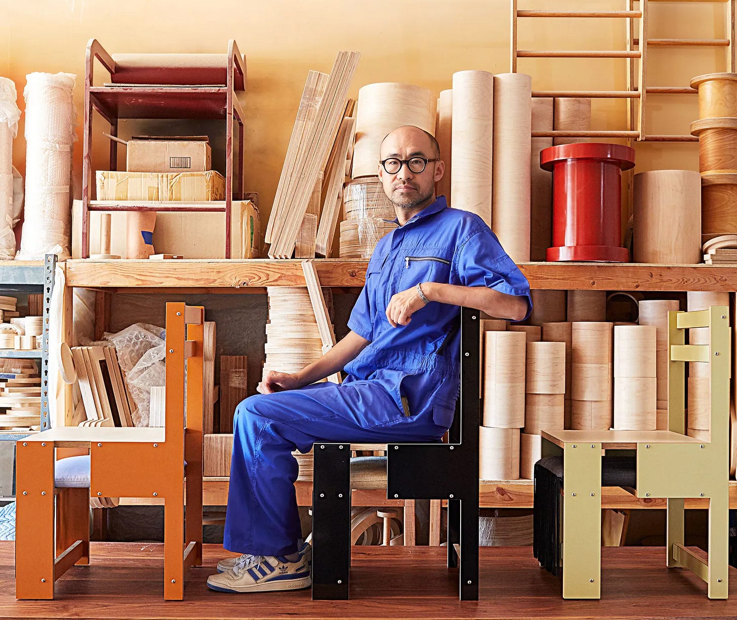 Okuda also operates Wagetsu, a side brand in partnership with Karimoku, which is an ongoing collection of contemporary-leaning chairs, tables, mirrors and room partitions.