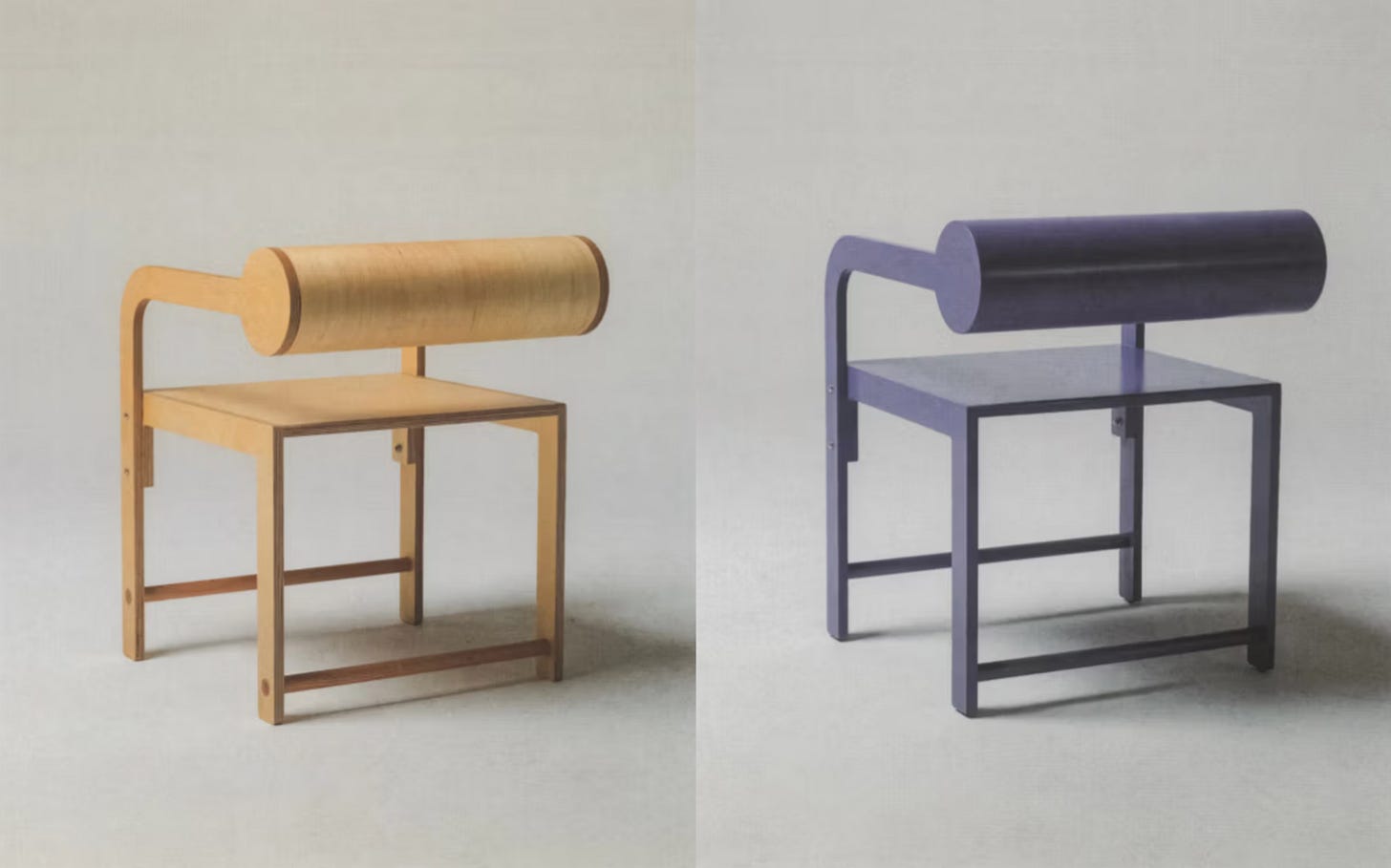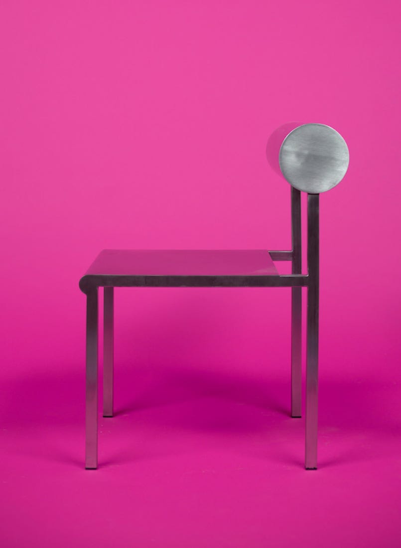 Okuda operates under the moniker Waka Waka and primarily works with Baltic birch plywood as his medium of choice; fashioning unmistakable cylinders and curved edges amid the contrast of treated plywood and stark, primary-colored façades of his shelving, bed frames, desks, and myriad of chairs and seating implements.