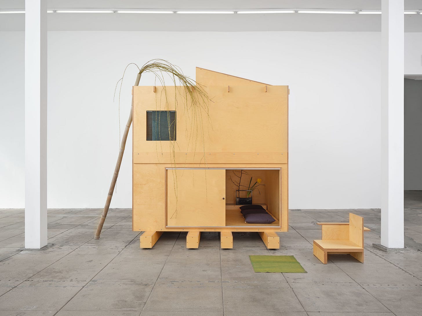 Okuda’s maternal grandmother taught the rituals of traditional Japanese tea ceremonies. His interest in that history and philosophy led him toward a recent work of a custom two-tatami tea house (below). The tea house is on exhibit at Overduin & Co. in Los Angeles through April 4, 2026.